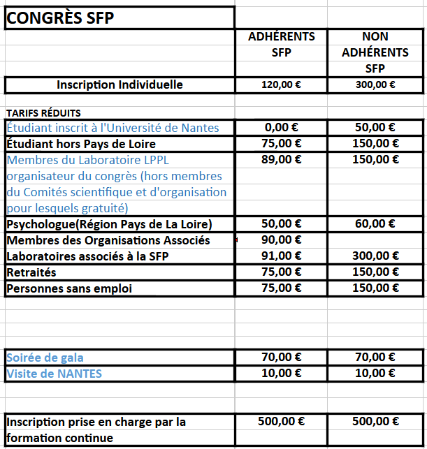 Rappel des tarifs